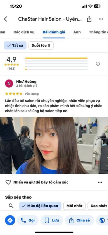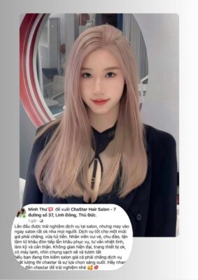 ““Chastar thật sự làm mình bất ngờ, không chỉ về tay nghề tạo kiểu tóc chuẩn Hàn mà còn ở sự tận tâm của đội ngũ. Mình cảm nhận được sự chuyên nghiệp ngay từ lúc bước vào salon, từ không gian, cách tư vấn cho đến thành phẩm cuối cùng. Rất hài lòng và chắc chắn sẽ quay lại.””